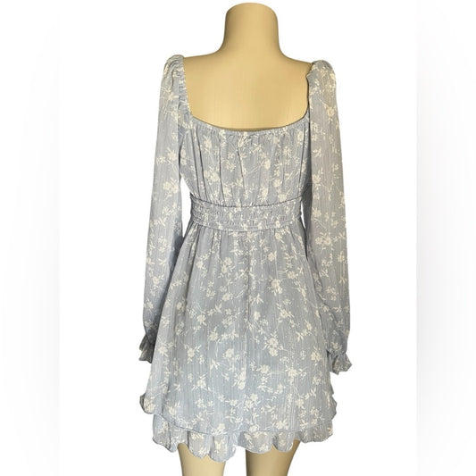 Light Blue Sweetheart Mini Dress with Bishop Sleeves
