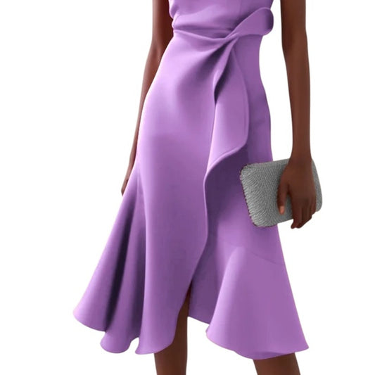 Light Purple Sleeveless Midi Elegant A-line Dress with Waist Twist for Day-to-Night