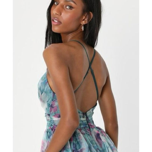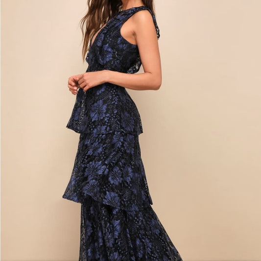 Lulu's Blue Pleated Wrap Gown for Cocktail