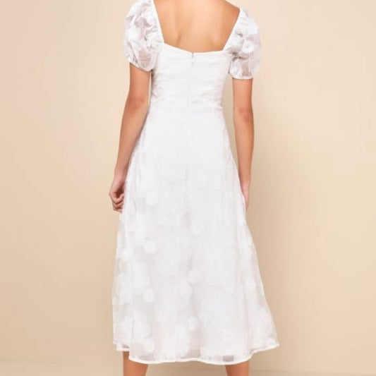 Lulu's White Puff Sleeve Sweetheart Midi Dress