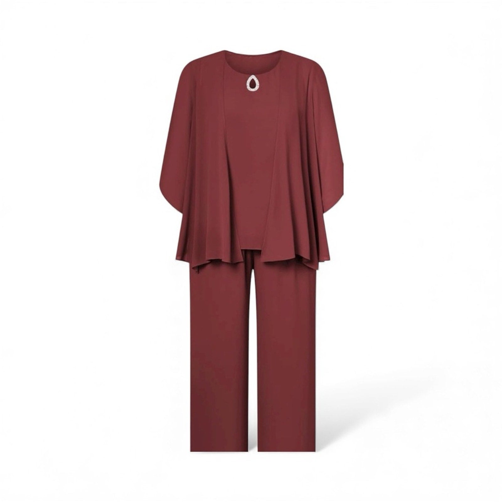 Stylish three-piece set in a beautiful Burgundy color. Perfect for any occasion.